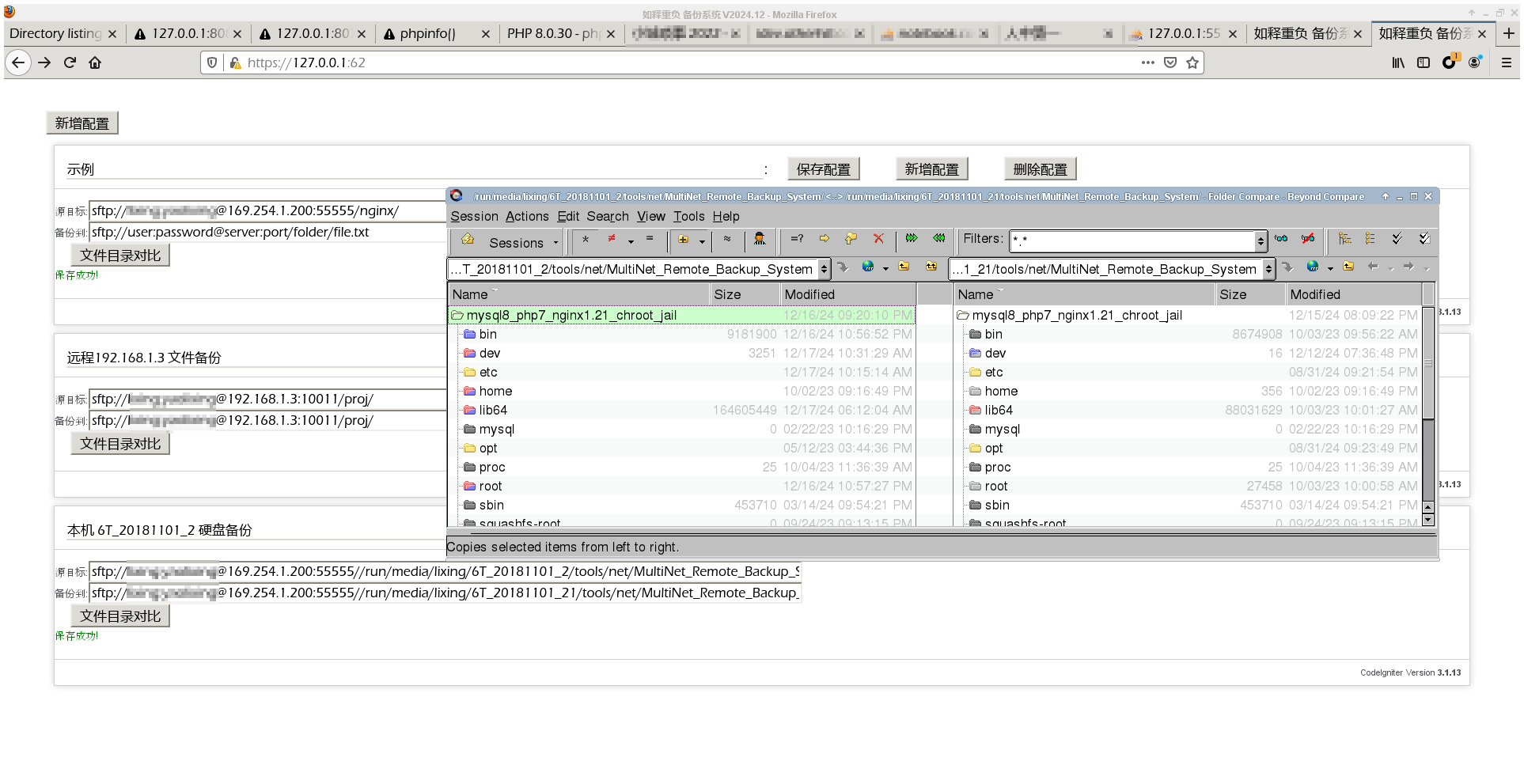 我们做的是,将配置与比较备份,两者做分离.虽然我们的配置网页,界面有点垃垮,但是它的源码是php, 你可以随便修改.基本功能,增,改删都具.够用好用就行.