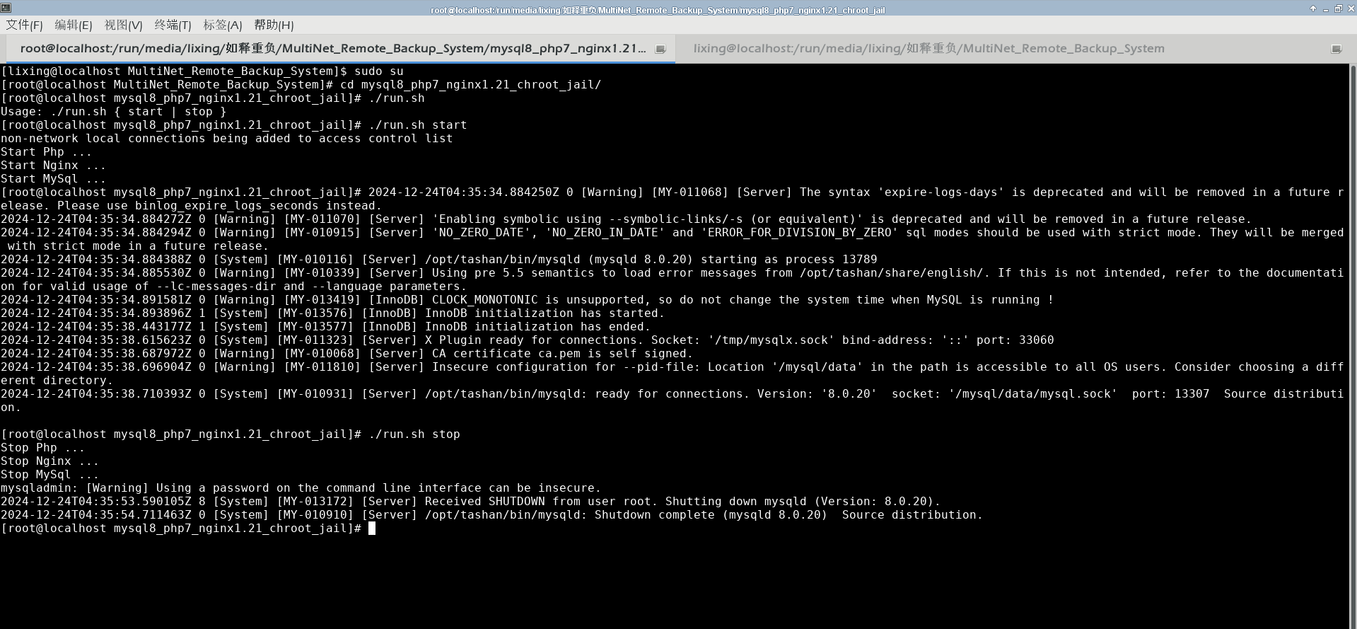 ./run.sh stop关闭系统.